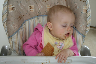 Hattie even got a slice of the Birthday cake. She should be a lot of fun on her first birthday. (Can you tell she has brothers. Her nice bib thats blue with cars on it.)